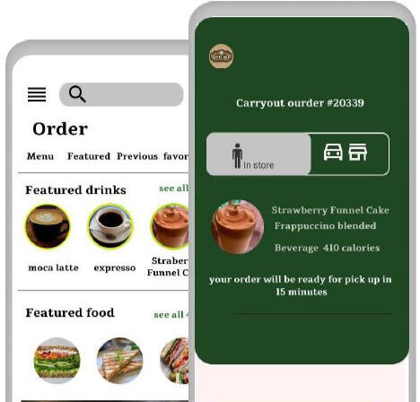 Design an app for Coffee Shop App that allows users to place an order ahead of time and pick up from the counter